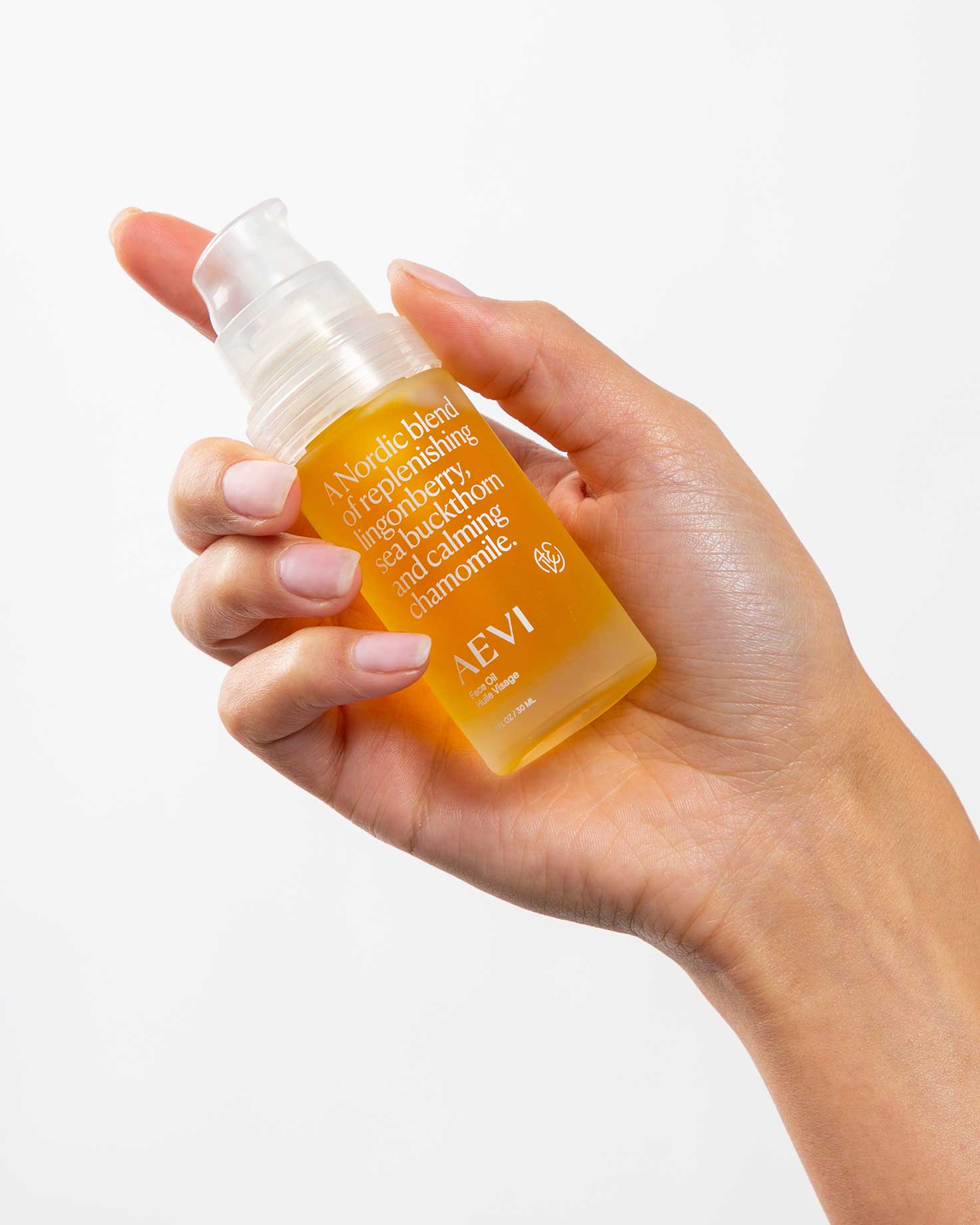 In an independent, instrumental study Aevi’s Nourishing Face Oil showed to decrease transepidermal water loss by up to 16% — thus reinforcing the hydro-lipid layer of the skin.