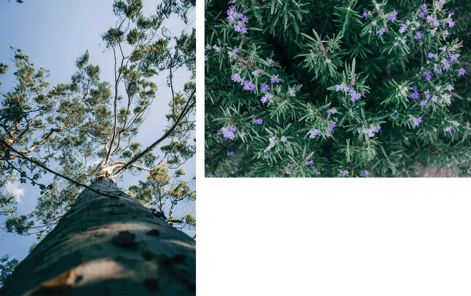 The term evergreen simply refers to a plant that keeps its leaves green year round. For our Clean Hand Sanitizer, we chose a blend of three evergreens (in the form of essential oils): organic Nordic Pine, Rosemary and Eucalyptus. Each of these plants have a therapeutic intention, or benefit, which we carefully consider in the formulation stage. Together, they form a scent profile that is reminiscent of deep green forests, for a sensory escape into nature wherever you may be.